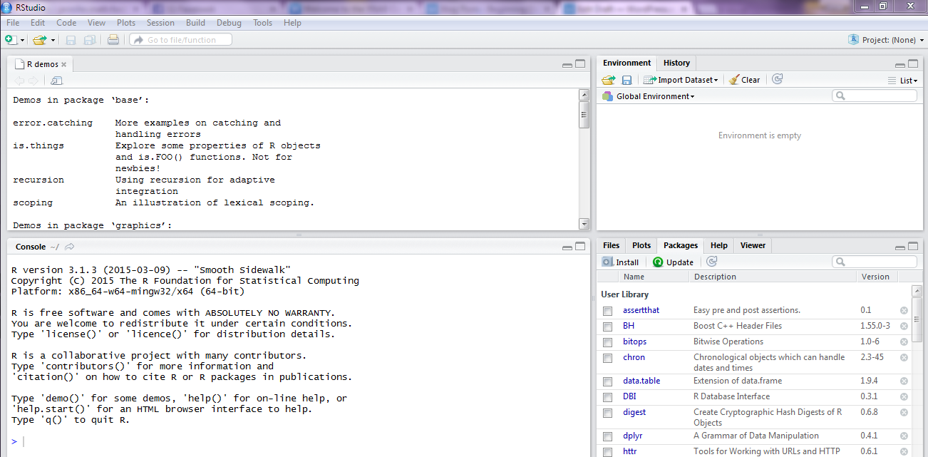 I started doing the first couple of things in the plain R, but moved to RStudio pretty quickly.